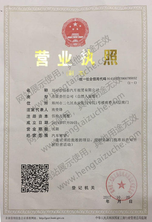 鄭州市恒泰汽車租賃有限公司